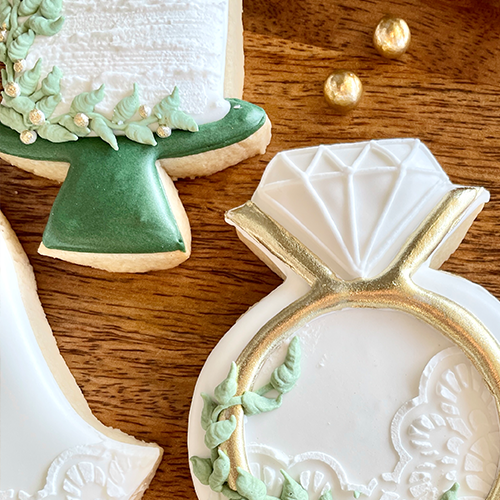 In addition to the 5 techniques included in this class, you’re also going to get access to the BONUS technique, Mesmerizing Textures. Take your wedding-themed cookies to the next level with lifelike gold and suede accents worth a double take.