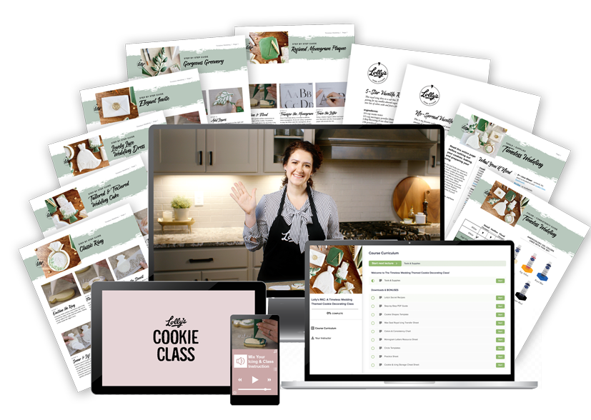 “I love the way Lauren / Lolly teaches! She’s very thorough and lots of fun to watch. Her classes are easy to follow and the Teachable format makes it easy to go back and review. I’ve learned so much and have been asked to make cookies for showers, parties, etc. I highly recommend these courses!”